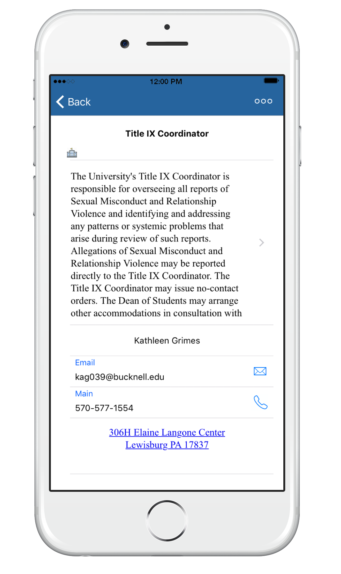 Easily find digestible and relevant information from Bucknell's policies and procedures, as well as links to websites with helpful information related to sexual misconduct.