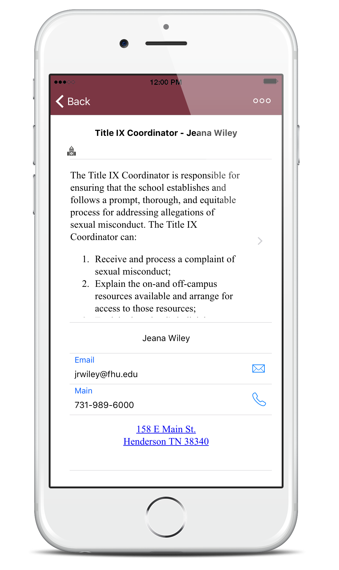 Easily find digestible and relevant information from FHU's policies and procedures, as well as links to websites with helpful information related to sexual misconduct.